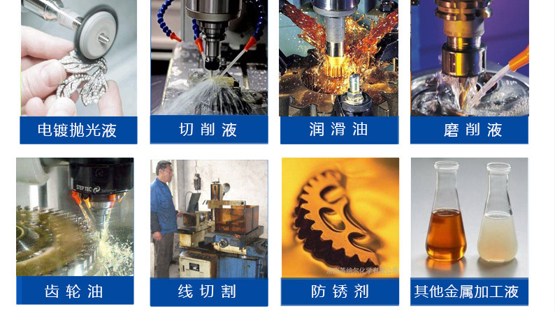 適用于:切削液、金屬加工、微乳液、高含水量液壓液、乙二醇液壓液、溶劑清洗、酸堿水性清洗劑、冷卻液、磨削(油)液、線(xiàn)割液、自動(dòng)流水線(xiàn)清洗機(jī)、大型凈洗機(jī)、潤(rùn)滑(油)液、皂化油、電火花工作液、鉆孔液、精磨液、蝕刻液、電解液線(xiàn)割液、堿提法工藝消泡、脫水劑等場(chǎng)合消泡抑泡。