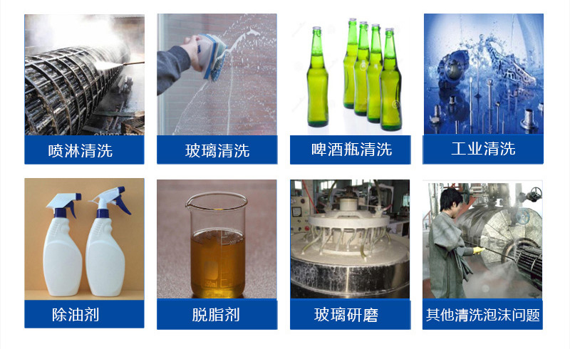 (3)水溶性好、高固含量、用量少、消泡快、抑泡長;